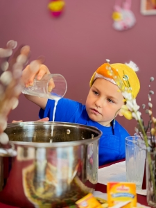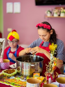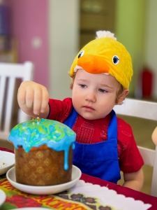 Мы вместе с детьми испекли настоящие пасхальные куличи! Старшие ребята занимались приготовлением теста — замесили его, внимательно следили за консистенцией и подъёмом. А младшие украшали готовые куличи яркой глазурью, посыпками и разноцветными бусинками.